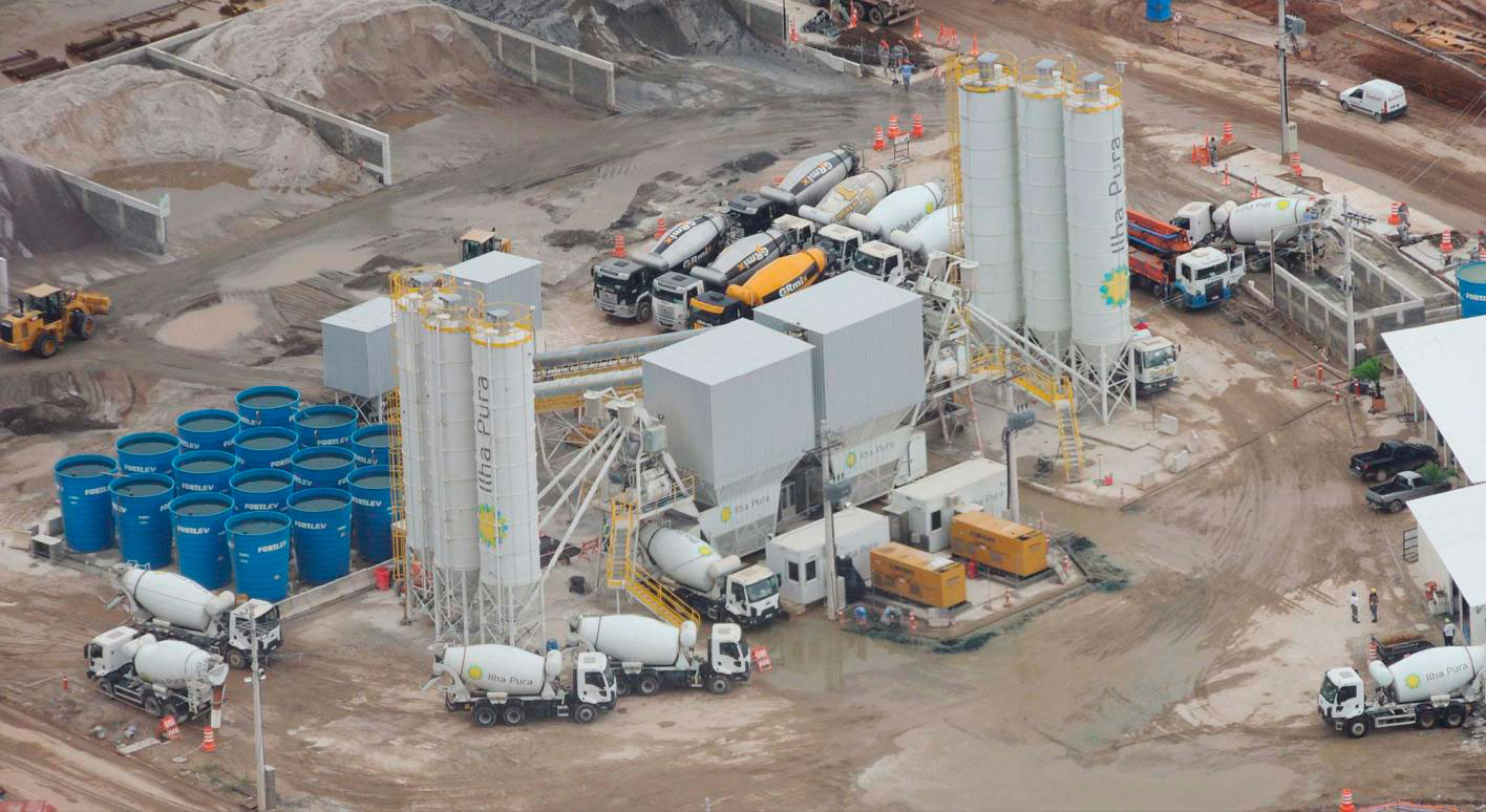 As duas centrais instaladas no canteiro do novo bairro serão responsáveis por aproximadamente 90% do concreto utilizado na obra. A central modelo M2 tem a vantagem de ser transportada de forma rápida e instalada facilmente em qualquer local. Com misturador de duplo eixo horizontal e capacidade para a produção de até 94 m³/hora, a M2 foi um dos grandes diferenciais no canteiro da Ilha Pura.