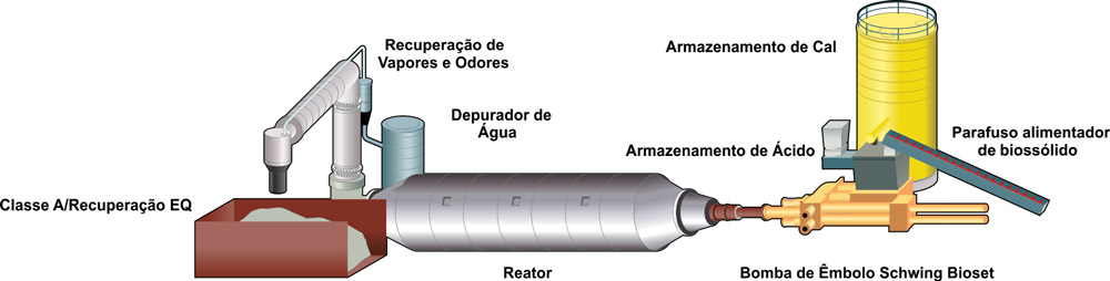 De lodo desidratado, a fertilizante orgânico sem contaminantes O lodo proveniente de regiões metropolitanas contém contaminantes e metais pesados, por isso não é ideal para ser higienizado, mas incinerado. Os oriundos do interior, como das regiões de Franca, Taubaté, Piracicaba, Várzea Paulista, Itatiba, Jundiaí,Campinas, Prudente, Sul de Minas Gerais, Paraná, Espírito Santo, Norte Fluminense, podem ser transformados em fertilizante para a agricultura. O processo Bioset de transformar o material desidratado em fertilizante é exclusivo. Necessita de um espaço pequeno, com apenas 3m de largura por 16m de comprimento e assim que o lodo é higienizado pode ser aplicado como fertilizante na agricultura. O operador em nenhum momento tem contato com o material, é um processo 100% isolado, livre de odores, sujeira, desinfecção e qualquer outro tipo de contaminação. Todos os agentes microbiológicos e bacteriológicos e patógenos como coliformes, salmonela e ovos de helmintos são eliminados quando o material é bombeado para dentro do reator, onde existe uma reação exotérmica que o eleva a uma temperatura que varia de 43ºC à 70ºC, por um período de retenção mínimo de 30 minutos (dependendo de cada tipo de lodo), tempo de percurso pelo reator. É diferente de outros sistemas, como a compostagem, que precisa de uma área muito grande e exige que se revolva constantemente o lodo para misturá-lo, além de grande quantidade de material de poda como folhas ou orgânicos. Como ele fica em média 40 dias exposto ao solo ainda sem esterilização, corre-se o risco de contaminação do lençol freático, necessitando de isolação eficiente do terreno. A secagem térmica convencional, outro processo, chega a reduzir o lodo em até 85% do volume, ou seja, uma tonelada pode minguar para 150 kg, porém são sistemas que exigem um investimento muito alto em equipamento e infraestrutura, alto CAPEX e alto consumo de energia elétrica o que eleva muito o custo operacional OPEX, além de eliminar completamente a matéria orgânica do lodo. O lodo classe “A” obtido através do processo Bioset pode ser posteriormente peletizado e adicionado nutrientes de acordo com cada tipo de cultura, de forma a agregar ainda mais valor ao produto.