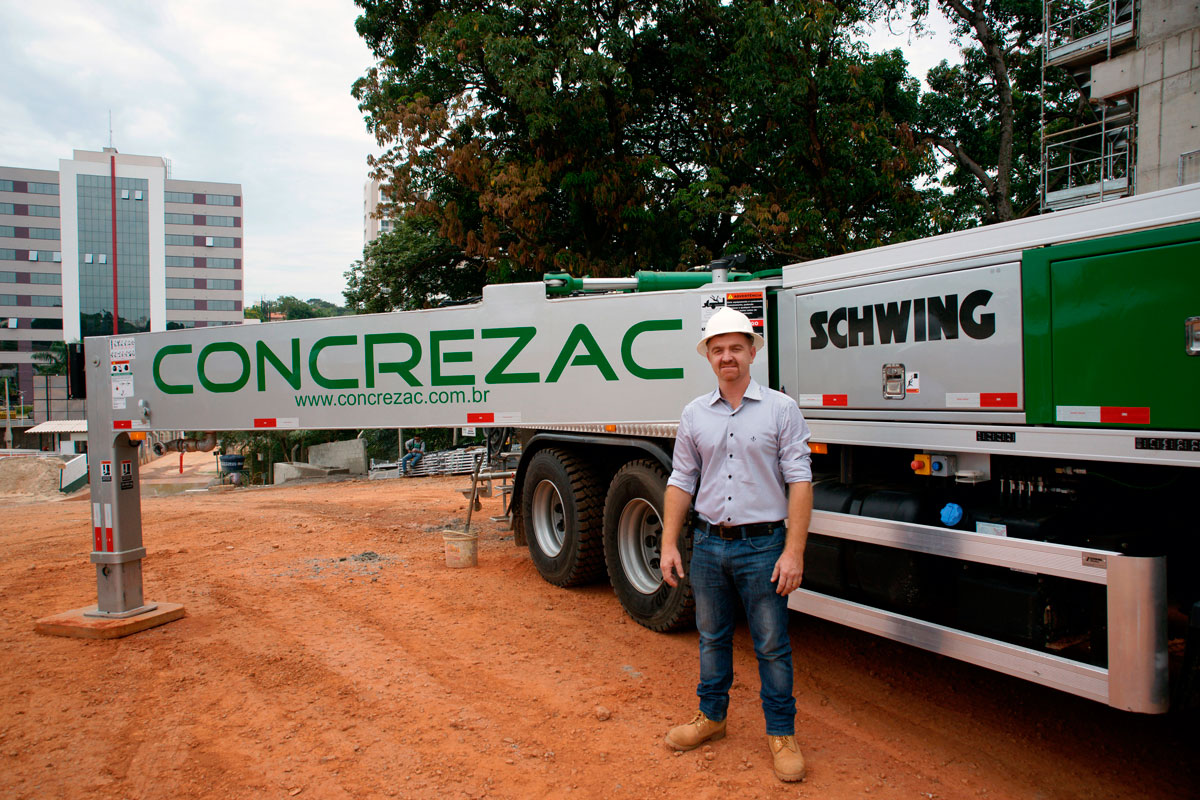 “Com espírito inovador e buscando sempre a melhor tecnologia do mercado, a Concrezac que com excelência atua na construção civil prestando serviços especializados em Bombeamento de Concreto e Pisos Industriais de Alta Resistência, buscou na SCHWING-Stetter a solução exata para seu mercado.” afirma o Eng. Luiz Polachini, Gerente Comercial da SCHWING-Stetter.