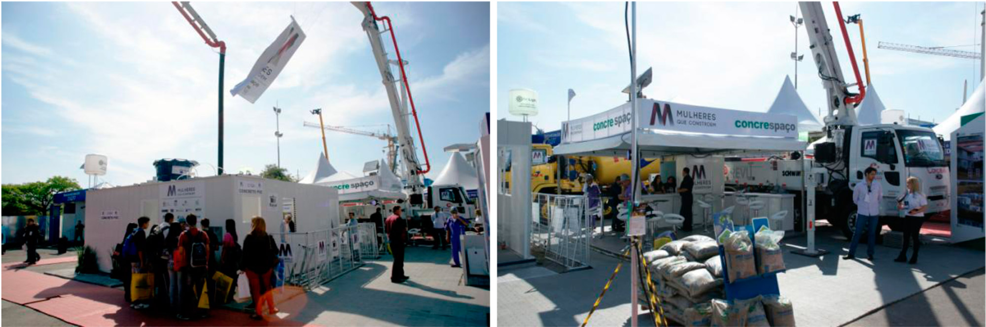 Além do processo de montagem e desmontagem, o estande Mulheres Que Constroem contou com demonstrações de kits hidráulicos e de gabaritos de alumínio. Todos os materiais utilizados foram doados pelos parceiros do projeto, Além de uma simulação de concretagem com Auto Betoneira SCHWING-Stetter AM 8 FHC e uma Auto Bomba para Concreto com Mastro para Distribuição SCHWING S36X.