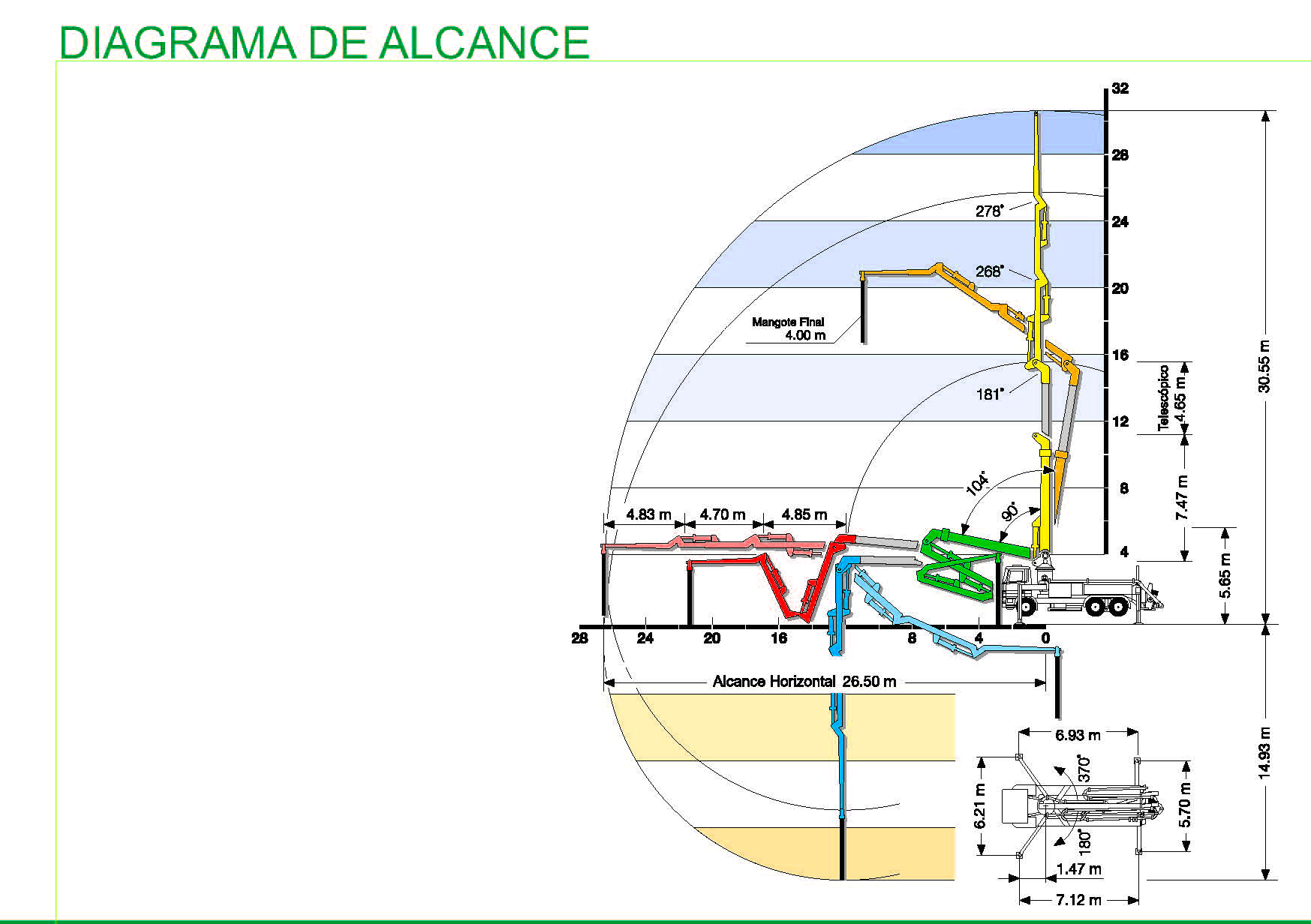 Estes equipamentos foram projetados e desenvolvidos para trabalhar nas pequenas, médias e grandes obras, com a máxima eficiência, confiabilidade e rentabilidade e excelente relação custo/benefício. Conta com kit para bombeamento de alta performance, mastro de distribuição com excelente diagrama de alcance, compartimentos ideais para o  transporte de tubulação e acessórios de concreto, pequeno espaço físico para estabilização e abertura do mastro.