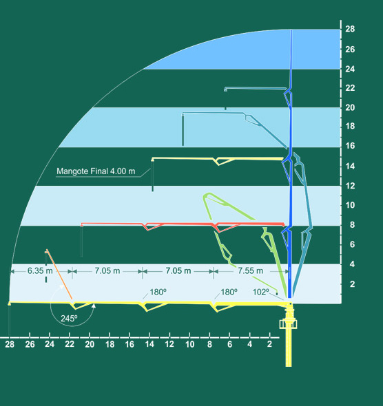 Alcance Horizontal (Centro da Torre de Giro) | 28 m |