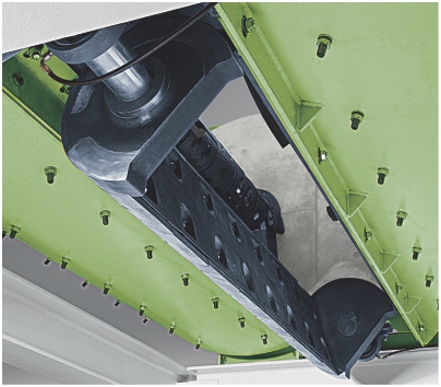 Salida de descarga de la Mezcladora, hidráulicamente activada para rápida descarga.