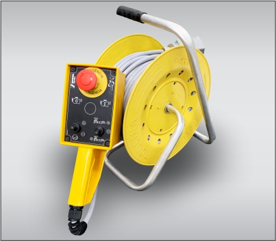 O controle à cabo (standard) possibilita a operação do equipamento em um raio de até 25 m. Inclui as funções bombeio/retorno, aceleração e parada de emergência. Opcionalmente, a SCHWING SPL 1000 S3 pode ser equipada com controle remoto via rádio.
