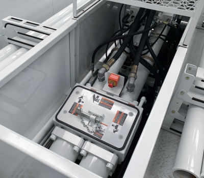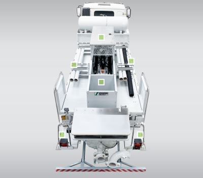 A nova SCHWING SPL 3000 GB foi projetada de forma a proporcionar praticidade nas diversas atividades diárias de bombeamento. Área de carga com suportes para tubulação rígida e flexível, caixa para acessórios e plataforma de trabalho.