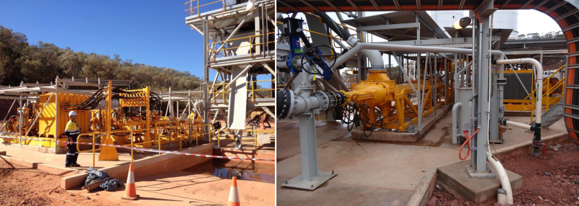Acima, um exemplo de aplicação da bomba de pistão SCHWING KSP 220 XL - EHS 4500 2x330 kW para bombeamento de paste-fill de rejeito de zinco.