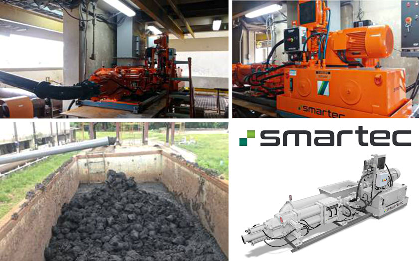 Aplicação: Transporte de lodo de ETE (Estação de Tratamento de Esgoto) desidratado por decanter com 23% de sólidos.