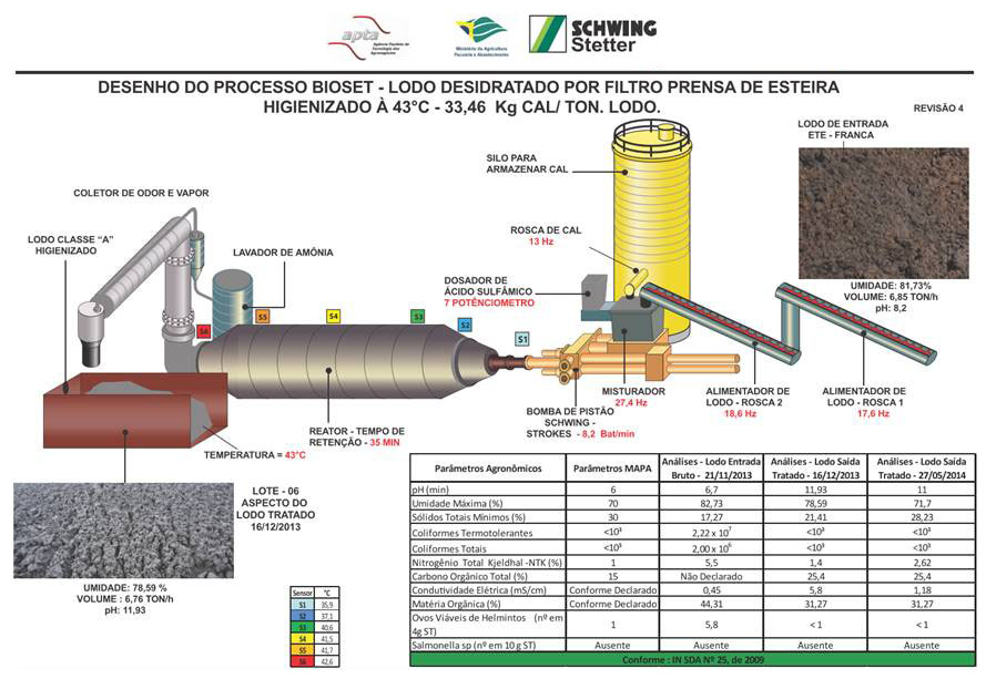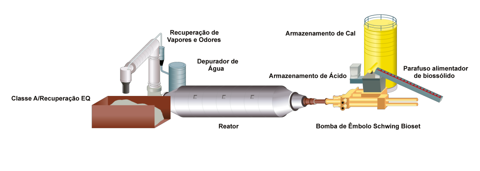 O processo Bioset obtém biossólidos Classe “A” através da equação Tempo vs Temperatura e ajuste de PH conforme regulamento 503 da EPA. A temperatura é obtida mediante a adição de cal virgem e ácido sulfâmico, e o PH elevado é obtido através da adição de cal virgem.