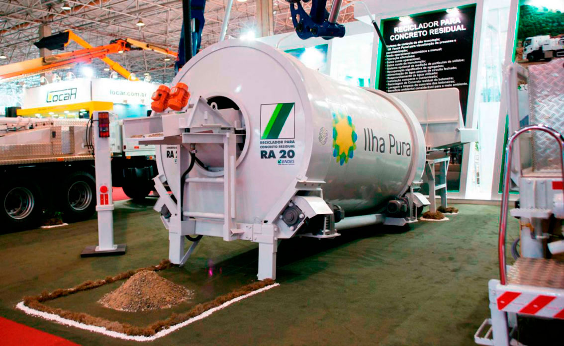 Case do projeto Ilha Pura (Vila dos Atletas), no Rio de Janeiro, foi tema do estande que teve maquete da obra e exibição dos equipamentos utilizados no canteiro onde a empresa é responsável por 90% do concreto fabricado nas centrais misturadoras.