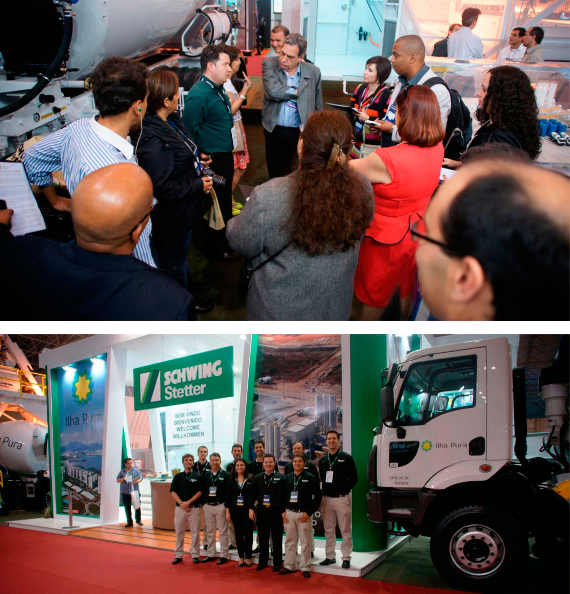 Centenas de visitantes compareceram ao estande da SCHWING-Stetter na Construction Expo 2013 – 2ª Feira Internacional de Edificações & Obras de Infraestrutura, para admirar não só o tamanho dos equipamentos expostos no Centro de Exposições Imigrantes, mas para compreender a eficiência deles na obra do bairro Ilha Pura (Vila dos Atletas), no Rio de Janeiro.