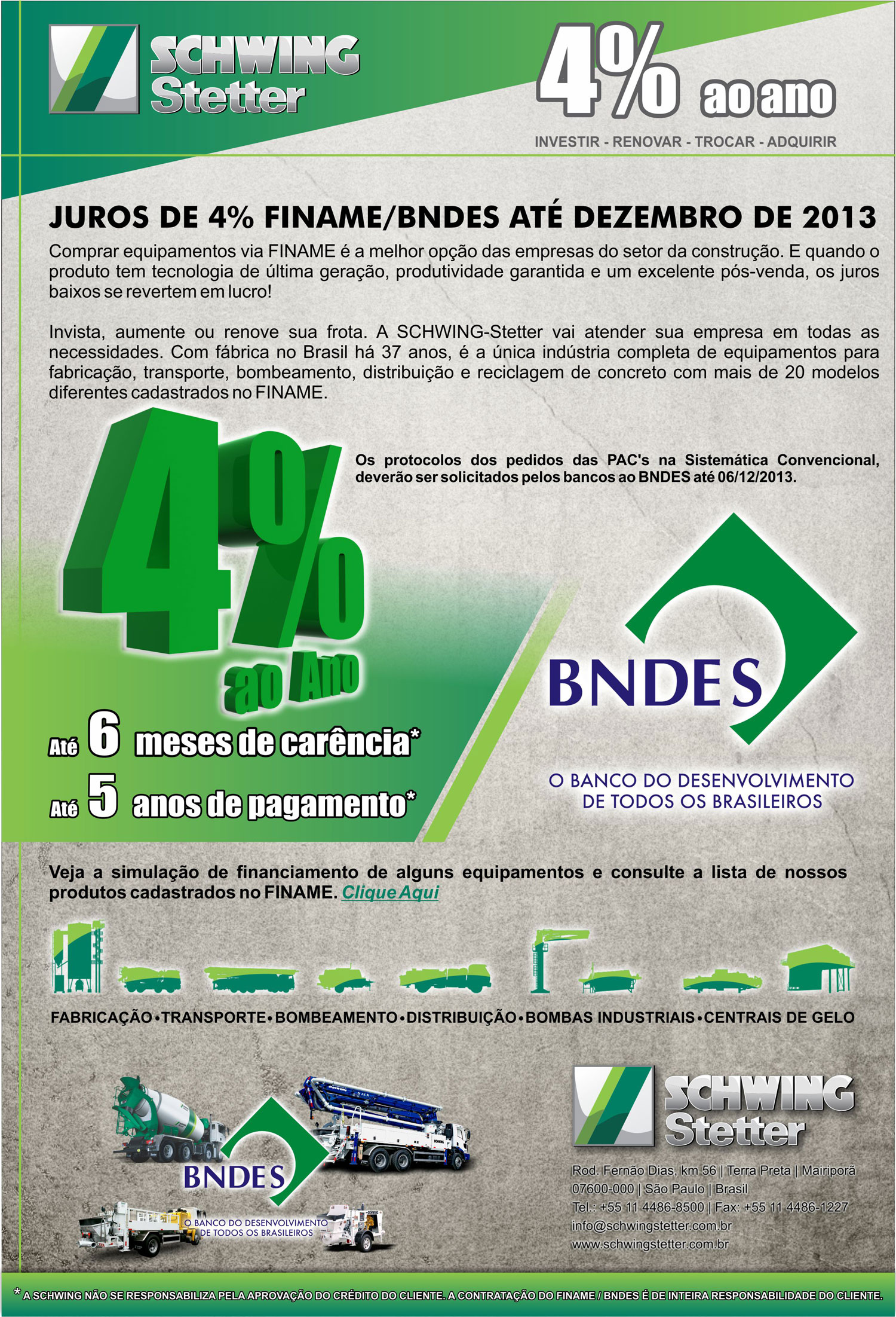 Juros de 4% FINAME / BNDES até Dezembro de 2013