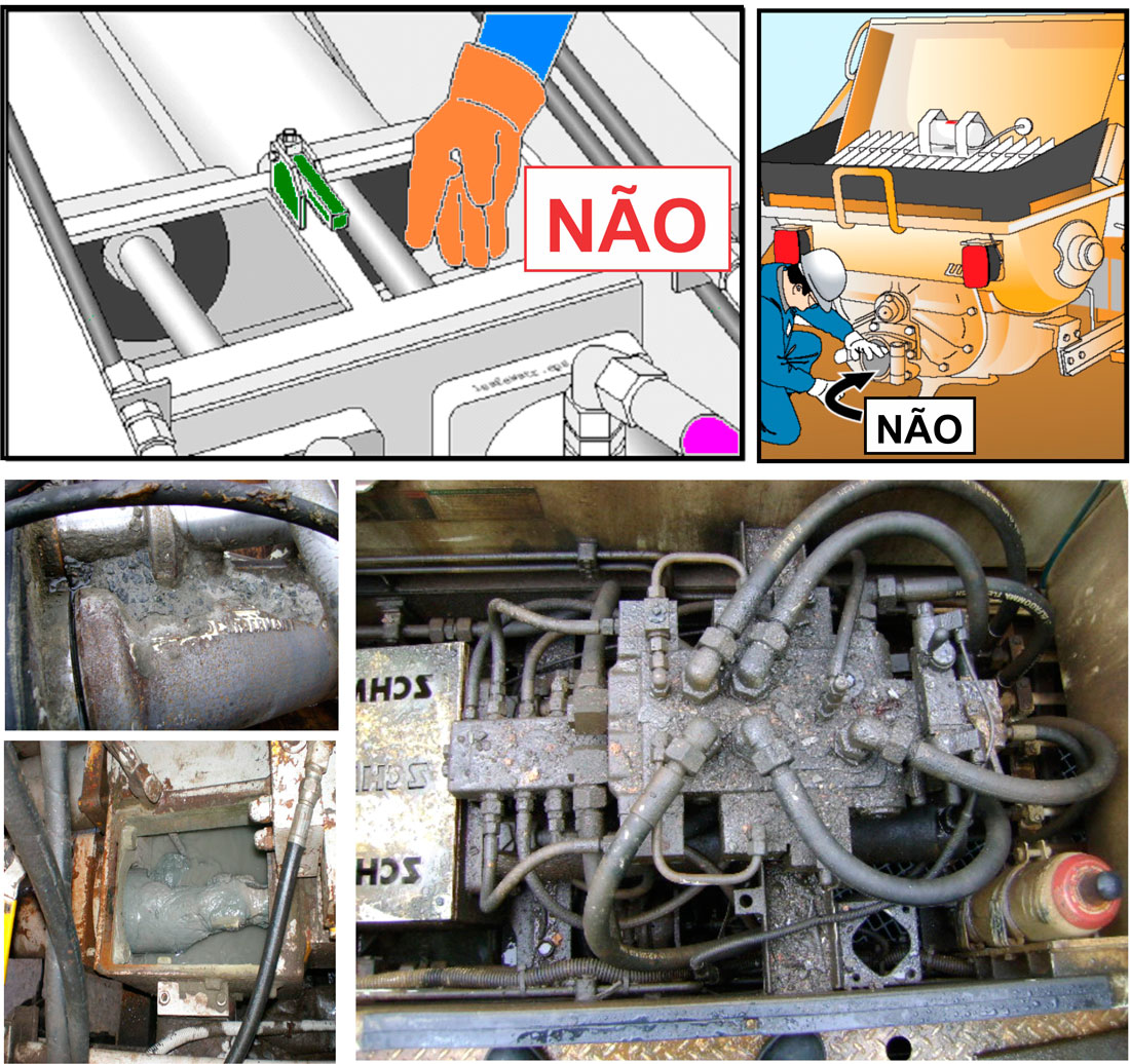 Ao final de todo o trabalho de bombeamento de concreto, começamos um outro também de muita importância: O processo de limpeza do equipamento. Nessa hora o operador está exausto, cansado e é quando ocorre a maioria dos acidentes, muitas vezes não possuem apoio ou recurso para limpeza do mesmo, e a pressa também faz com que o operador cometa atos inseguros, como: colocar a mão dentro da válvula para ajudar na retirada do concreto, ficar em cima da grade da tremonha (côcho), etc. Esses atos inseguros correspondem a maioria dos acidentes que ocorrem no equipamento.
