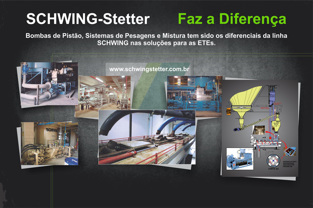 De acordo com ele, as tradicionais bombas de hélice contínua não são capazes de bombear um lodo de 18% de sólidos com uma pressão superior a 16 bar, se não forem adicionados polímeros, necessários nesse caso para fluidizar o lodo desidratado e evitar que ele atinja uma pressão muito alta durante o bombeio. “Os custos relativos à compra e mistura de polímeros encarecem a operação”, diz. Além disso, continua Ralf, as bombas de hélice contínua não bombeiam partículas de maiores dimensões que vêm misturadas no lodo desidratado. Essas partículas travam a hélice e danificam completamente a bomba. “Já as bombas de pistão admitem uma partícula de corpo estranho de até 3 polegadas (76,00 milímetros) dependendo do diâmetro da tubulação”, explica o engenheiro. A SCHWING-Stetter Brasil fornece sistemas com circuito hidráulico aberto que promove filtragem 100% de todo o óleo hidráulico, podendo ser acionada elétrica ou hidraulicamente, sem interrupção do bombeio, característica vantajosa em casos de eventual falha nos comandos elétricos. Mercado próspero a ser explorado Há uma demanda expressiva para utilização de bombas para materiais pastosos no setor de água e saneamento, mas não há iniciativa de investimentos governamentais nessa área, todos os sistemas estão ultrapassados, com equipamentos rudimentares. A SCHWING-Stetter Brasil já investiu cerca de R$ 1,2 milhões em estrutura implantada para atender a essa área, com projetos em negociação com valores entre R$ 700 mil a R$ 25 milhões que incluem o fornecimento das soluções em bombas e demais equipamentos, desenvolvimento e acompanhamento da planta e consultoria específica para o bombeamento. Hoje existem os transportadores de correia expostos à corrosão do lodo e de todo o material processado. Com as bombas de pistões isso não ocorre, o acionamento não entra em contato com o material, somente os êmbolos de recalque, e o transporte do lodo é feito por tubulação em aço inox, 100% resistente à corrosão. As instalações de tratamento de água e esgoto equipadas com bombas de pistão são muito comuns em países norte-americanos e europeus, onde existem sistemas fechados que não geram odores, sujeiras ou ruídos. A Sabesp tem uma bomba de pistão que faz o bombeamento do lodo desidratado com 40% de sólidos, na Estação de Tratamento de Esgoto (ETE) Parque Novo Mundo, em São Paulo. O sistema foi instalado pela SCHWING Equipamentos há três anos. “A Sabesp tem custo zero com manutenção, essas bombas podem operar um período de 50 mil horas – equivalente a cinco anos de trabalho – sem interrupção. Além disso, temos equipes especializadas para manutenção e assistência técnica”, garante Ralf. Desidratação - Rosca para desaguamento do lodo A SCHWING também fornece roscas de desaguamento com várias vantagens em relação às centrífugas tradicionais, a exemplo do baixo consumo de energia elétrica, pouca vibração e reduzido custo de manutenção.A empresa apresenta soluções específicas para o bombeio do lodo desidratado, bem como seu tratamento. Os silos de fundo plano com sliding frame previnem a obstrução do material a ser descarregado do silo para caminhão. Eles têm a função de cisalhar o lodo e forçar a entrada do mesmo na rosca extratora.