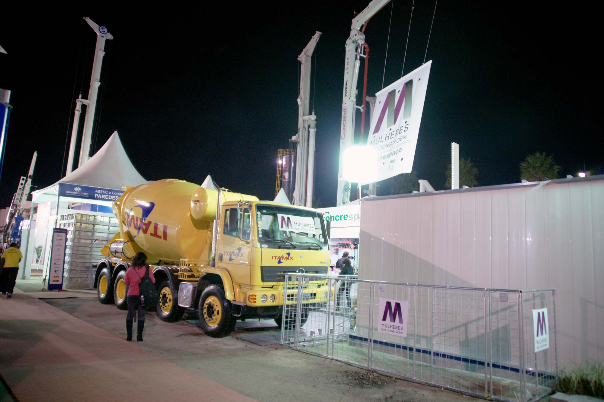 Além do processo de montagem e desmontagem, o estande Mulheres Que Constroem contou com demonstrações de kits hidráulicos e de gabaritos de alumínio. Todos os materiais utilizados foram doados pelos parceiros do projeto, Além de uma simulação de concretagem com Auto Betoneira SCHWING-Stetter AM 8 FHC e uma Auto Bomba para Concreto com Mastro para Distribuição SCHWING S36X.