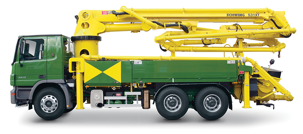 SCHWING-Stetter Brasil lança na Concrete Show as bombas S43SX (2ª geração), S31XT com mastro de distribuição telescópico e SPL 2000 GB, as Autobetoneiras AM10FHC e AM8FBP com kit de bombeio, e o Auto Robô para projeção de concreto TSR 30.14