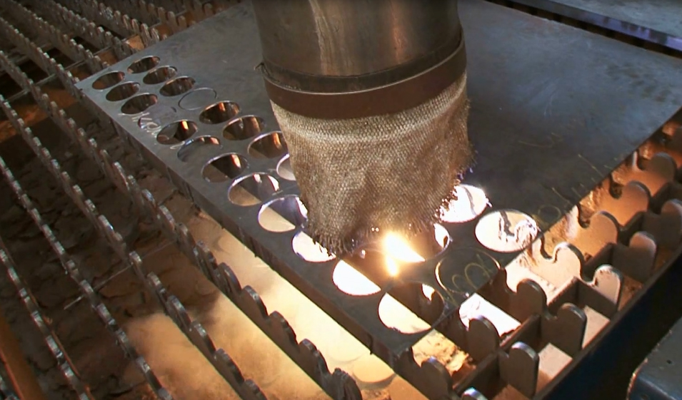 Corte das chapas é realizado através de máquinas cnc, automatizada, com os processos de plasma e oxi-combustível, que consiste no processo de corte elaborado com software reduzindo perdas ou sobras exageradas de matéria prima.